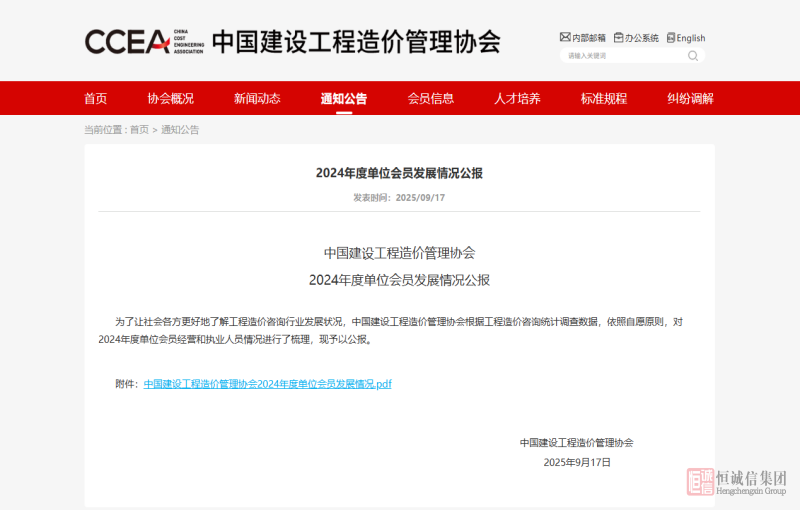 2024年度全國造價(jià)咨詢百強(qiáng)企業(yè)公布 | 北京恒誠信蟬聯(lián)全國前十
